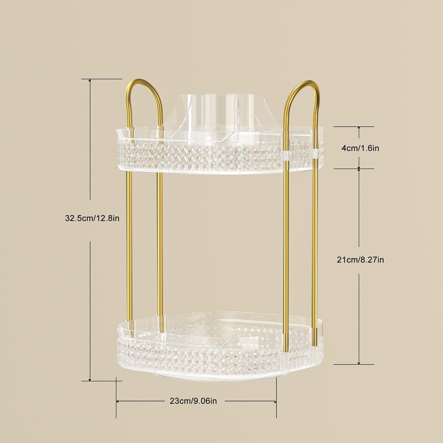 - 2 Tier Lazy Susan Organizer: Skincare organizer and storage comes with brush holder and compartments at the top, the lower layer is designed with a height of 8.27 inches, fearless of high bottles, to meet more storage needs. Let you change the storage space from square to cube, save countertop area