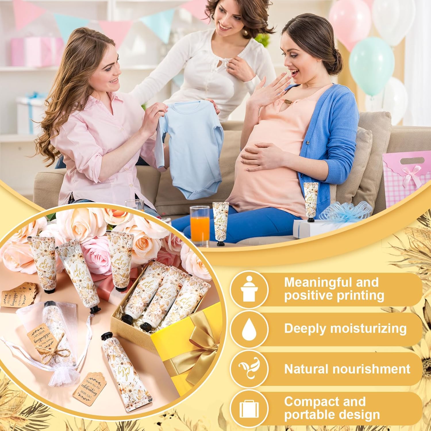 - Broad Scope of Use: baby shower hand cream sets are ideal for a multitude of settings; You can spend a cozy time at home using it with your family, or carry it to work, vacations, outdoor gatherings, and so forth; It also makes a nice gift for spouses, mothers, or even as a treat for yourself during events like baby showers, birthday celebrations, weddings and anniversaries