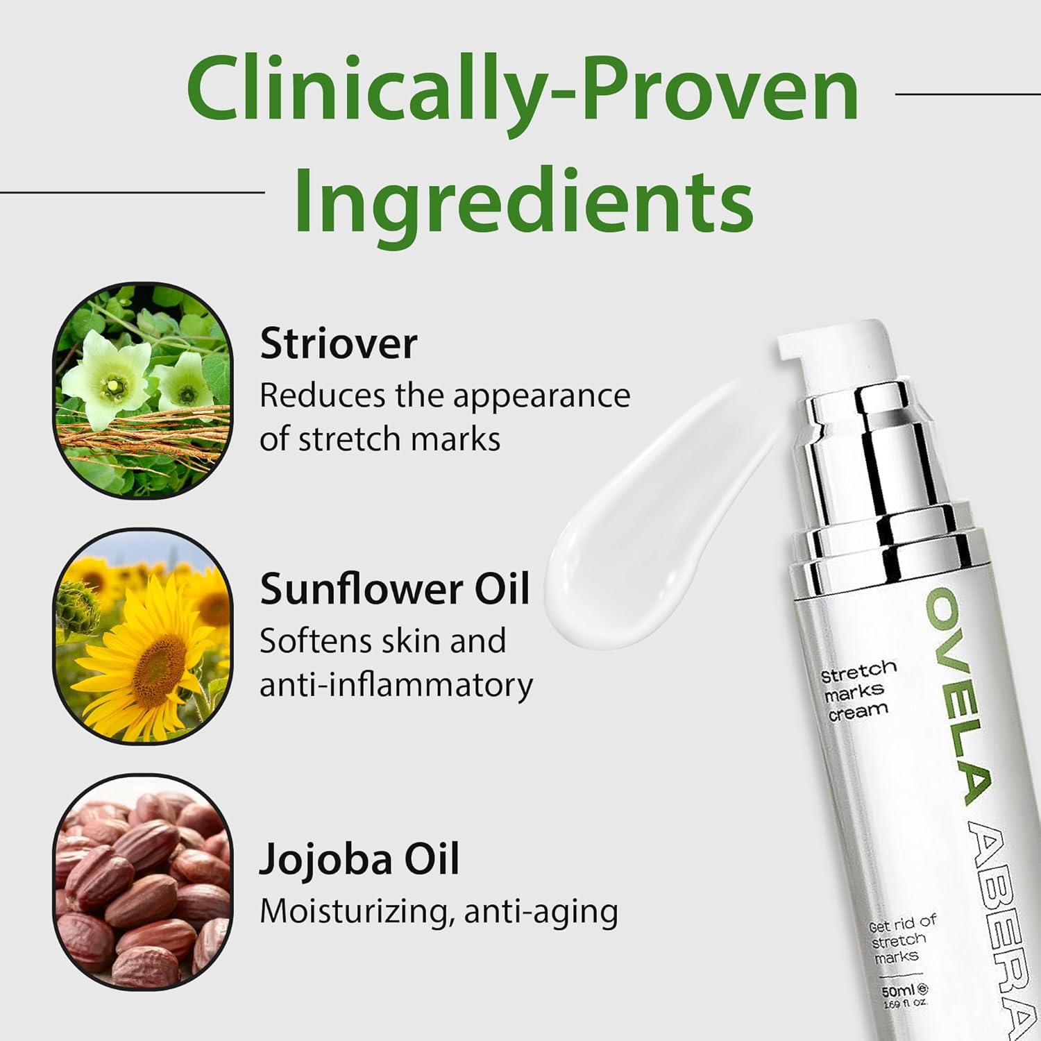 Abera Ovela Maternity Stretch Mark Cream for Pregnancy and Weight Fluctuations, Stretch Mark Treatment Pregnancy Must Haves, Deep Stretch Mark Removal, All Skin Types, 1.69 fl oz