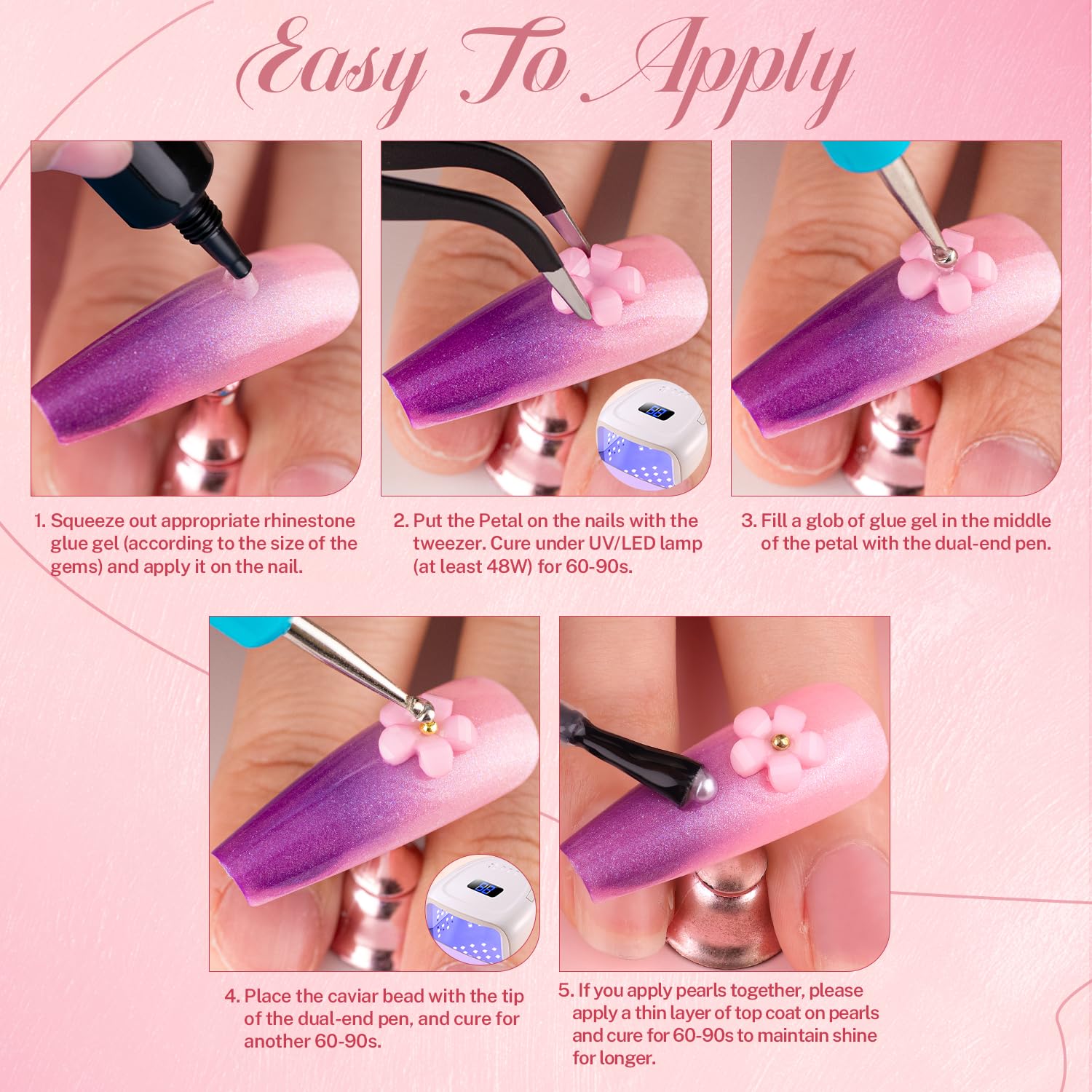 - ✿ Package Content -- It comes with assorted nail charms, including colorful flower nail charms with mini metal caviar beads, 75 pcs nail bow charms, shiny clear & AB glass rhinestones, white half round pearls. Tweezers and picking pencil are also equipped for your convenience.