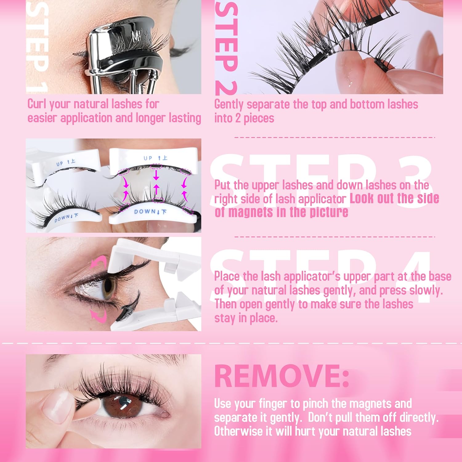 - Magnetic Eyelashes with Applicator - The magnetic lashes is super easy to wear you can get your lashes on anytime anywhere. As long as you read the quick guide seriously and make sure the direction of magnets is all right you will get a perfect lashes even if you are totally a lash newbie