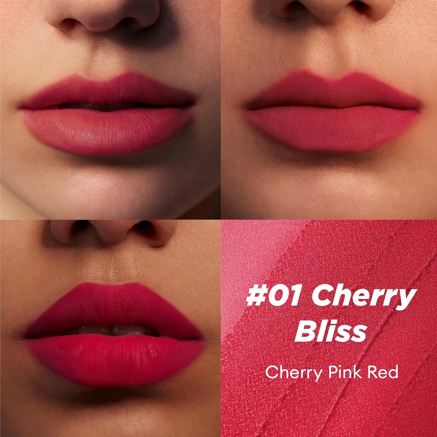 ITY Velvet Matte Finish Lip Stain-Mousse Textured Pudding Pot Lip Clay with Brush, Red Shade, Dual-Use as Lipstick and Blush, Conceals Lip Lines, Rich Pigment, 0.21 oz (6g) in Cherry Bliss
