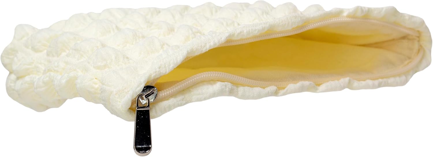 PAZIMIIK Floral Makeup Bag Large Cotton Zipper Pouch for Purse Travel Canvas Make Up Organizer for Women Cosmetic,Bubble Beige