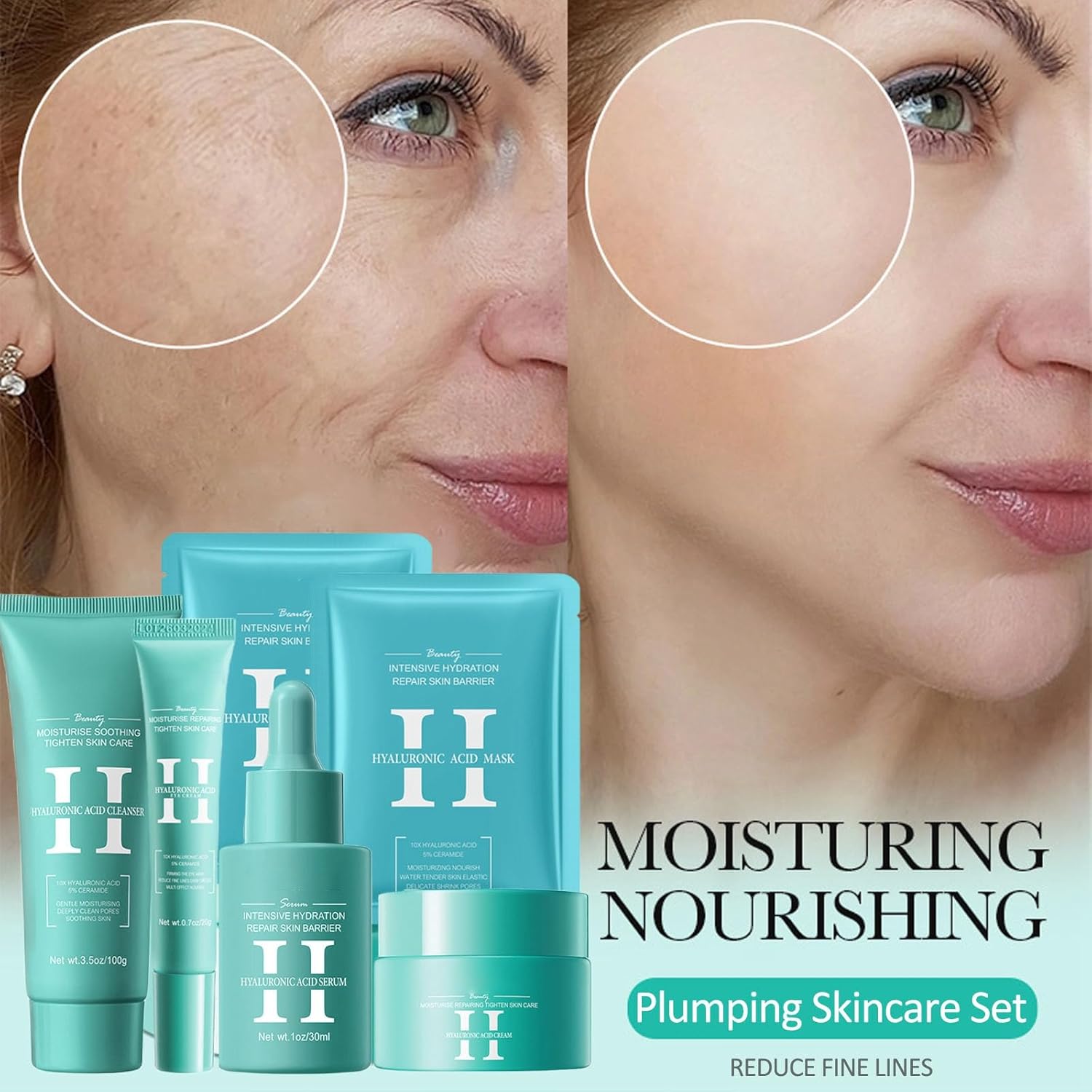 Hyaluronic-Acid Skincare Set, Skin Care Kit For Women, Skincare Gift Set, 6pcs Facial Kit For Women With Cleanser, Face Serum, Face Moisturizer, Eye Cream & Face Mask, Clean, Soft, And Plump
