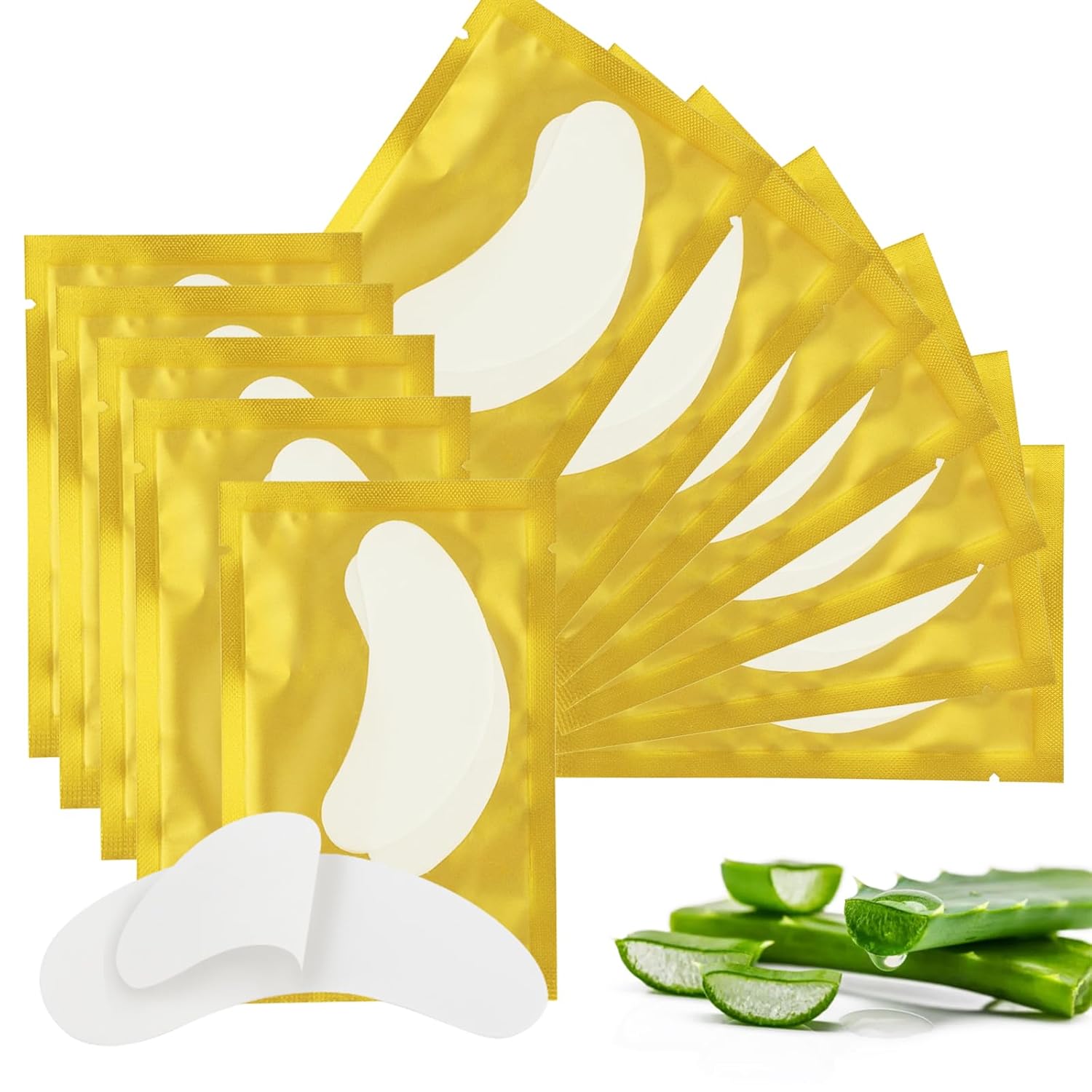 100Pairs Eyelash Extension Gel Patches Kit Natural Hydrogel, Lash Gel Pads for Beauty Makeup Mask Kit Supplies Eye Mask Pads Beauty Tools (Gold)