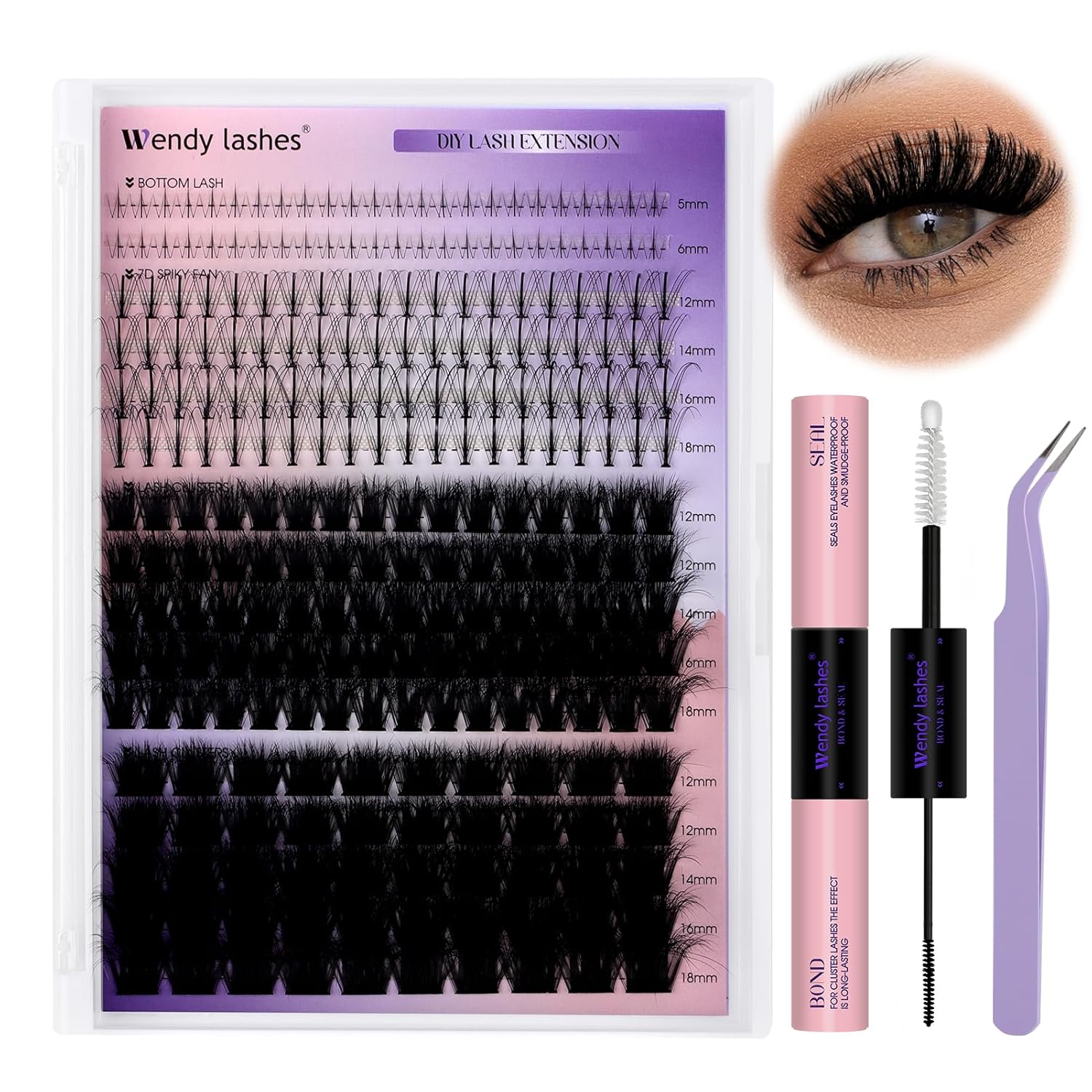 - PREMIUM QUALITY LASHES, EASY TO WEAR: WENDY LASHES eyelash extension kit have super soft lash tips and looks like more realistic and wispy. Matte black, and natural lashes can be better blended. Bottom lashes with transparent wide band are easier to handle and more natural looking compared to single lashes.