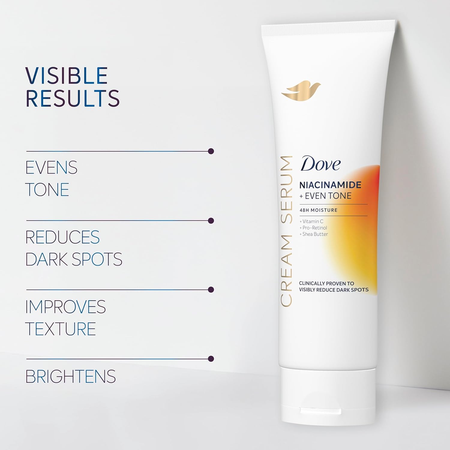 - SCIENCE-BACKED: Dove Cream Serums are clinically tested for efficacy and safety for all skin types and tailored to include powerful ingredients scientifically evidenced to provide visible benefits to skin.