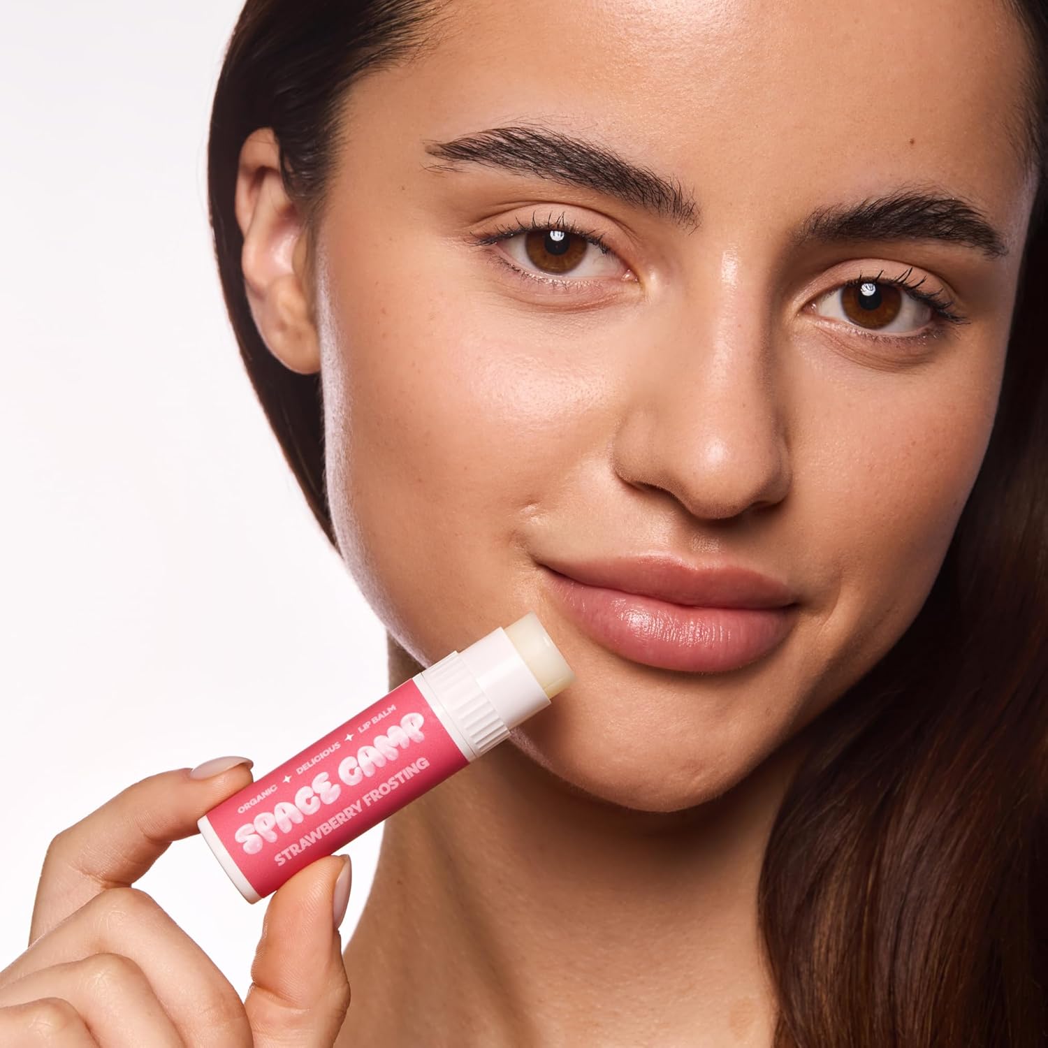 Space Camp Wellness Jumbo Lip Balm - Strawberry Frosting Organic Flavored Balm (2 Pack)