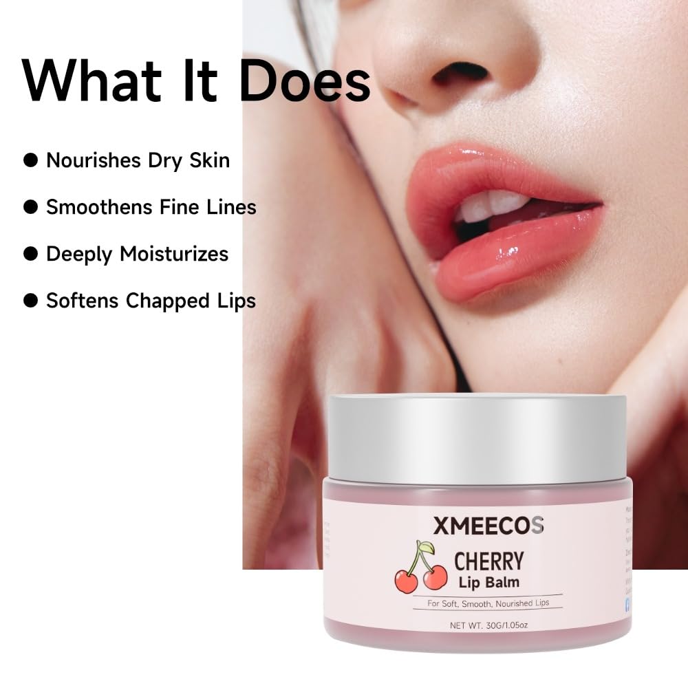 Beeswax lip balm with rose and jasmine, kiwi, strawberry, peach, cherry extract bee friendly 100% Natural for men and women, cruelty free moisturizing (30 Grams, Cherry)