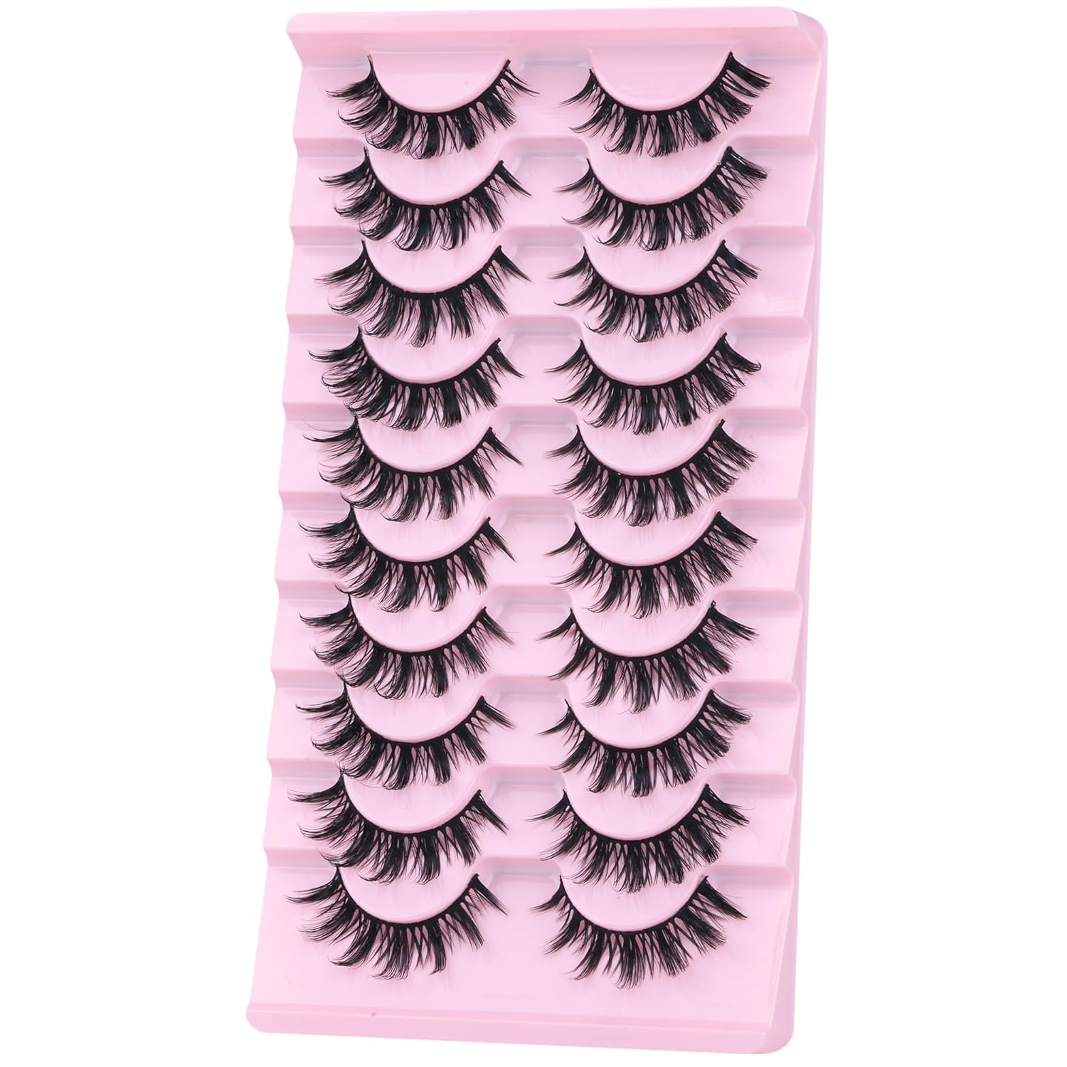 False Eyelashes Manga Lashes 10 Pairs False Eyelashes Japanese Style D Anime Lashes Natural Cosplay Lashes Natural Look 15 MM Wispy Faux Mink Lashes Full Strip Doll Lashes by FANXITON