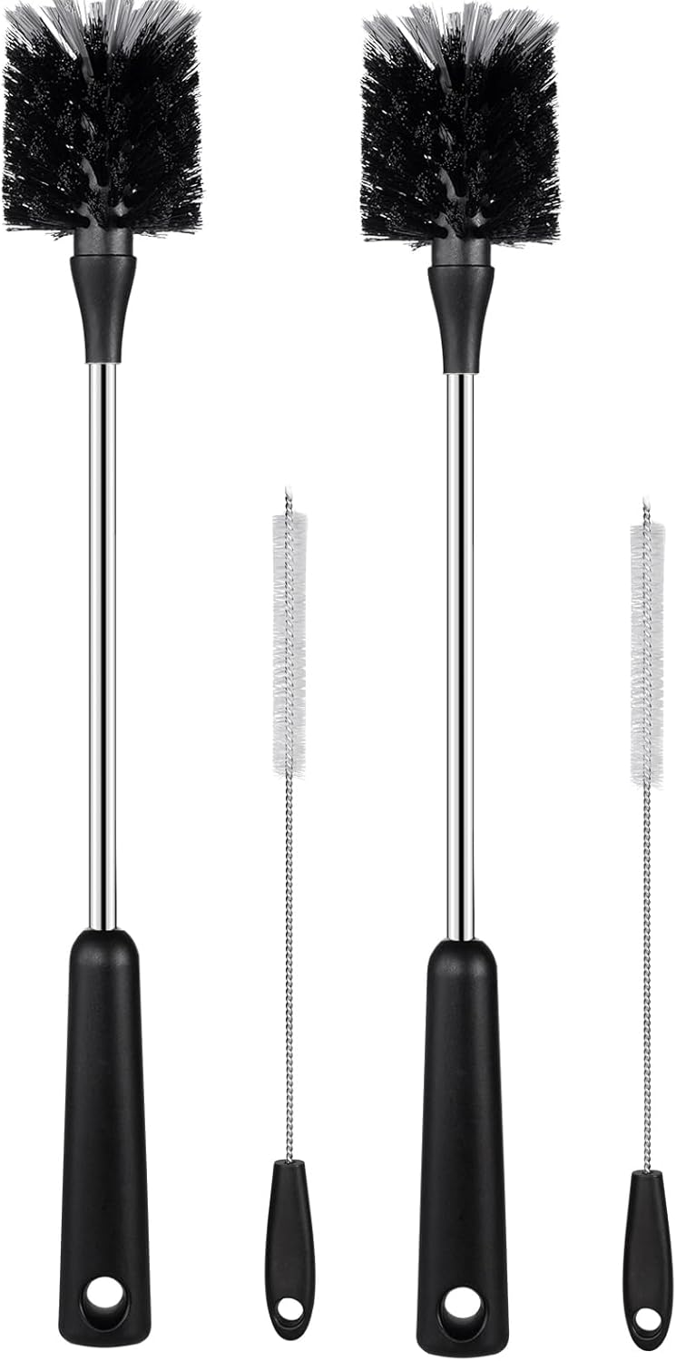 - Versatile Cleaning Brush: This bottle cleaning brush is not just for water bottles, but also great for wine bottles, coffee pots, teapots, vases, kitchen sink, or use as dish brush and more. One brush to clean them all, ideal for homes, cafes, and restaurants. The bottle cleaning set is including 2 long bottle brushes, 2 straw brushes.