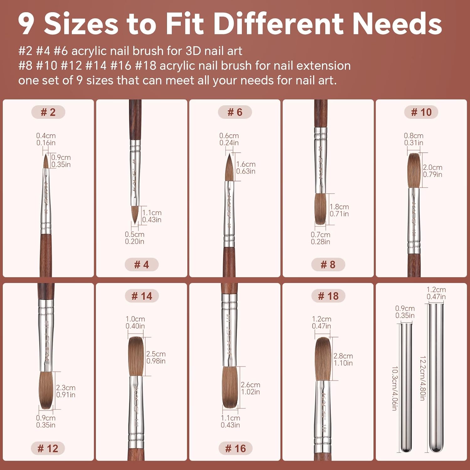 - KADS provides 8 types of brushes, including 2 # 4 # 6 # 8 # 10 # 12 # 14 # 16 # 18 #, to meet your different needs for painting, lining, 3D construction, extension, and more.
