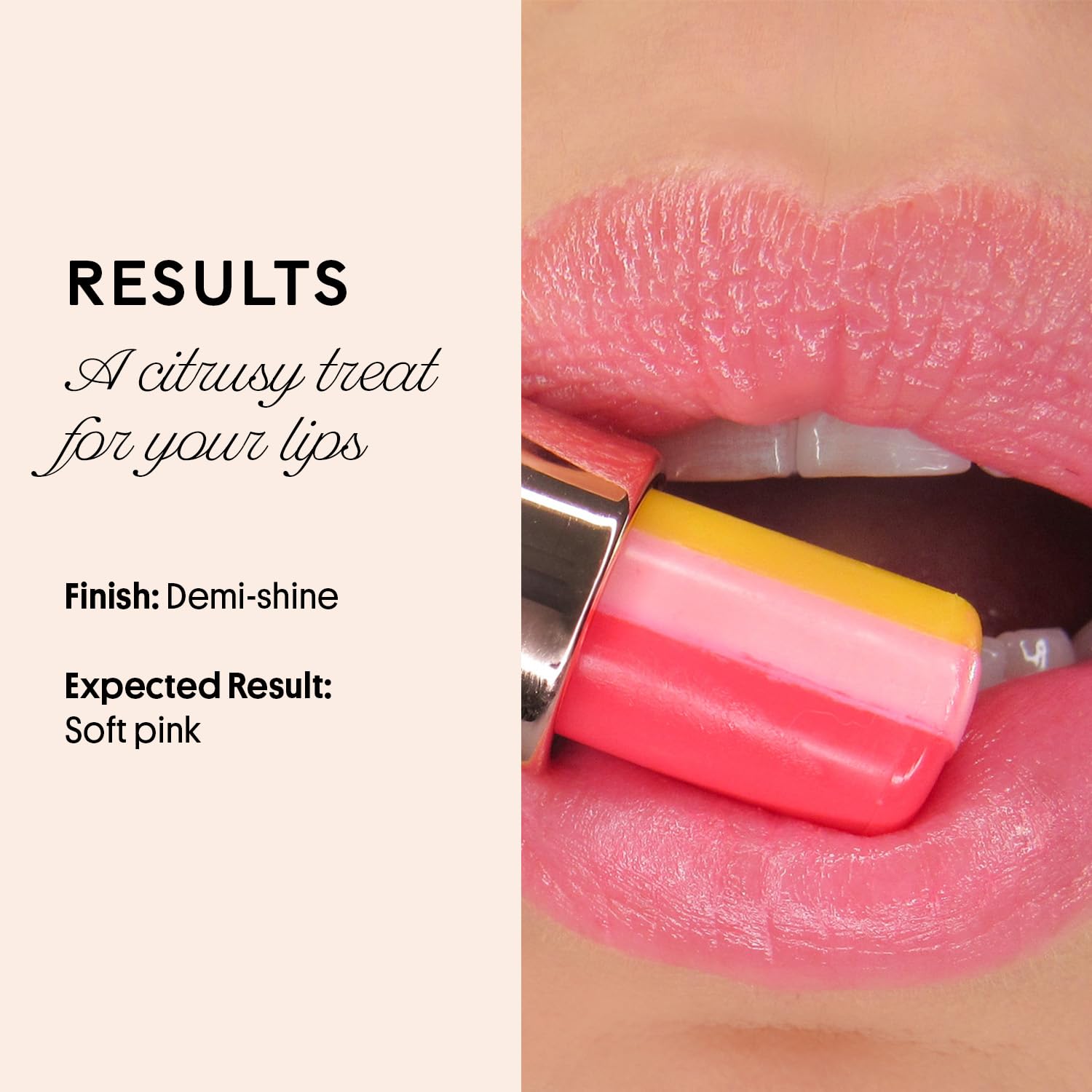 - PINK LEMONADE: Pucker up to the juicy, citrus sweet aroma of pink lemonade with every glide of this tri-colored balm. The refreshing sweet tart scent feels like a sip of summer while it cushions lips in moisturizing, soft pink shine.