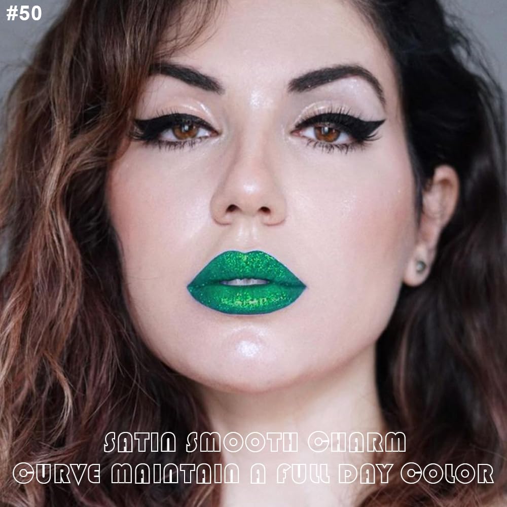evpct 2Pcs Green Shimmer Glitter Shiny Liquid Lipstick Lip Gloss Stain and Retractable Lip Liner Makeup Set for Women Long Lasting Waterproof 24 Hours Lipstick labial mate larga duracion 24 50#