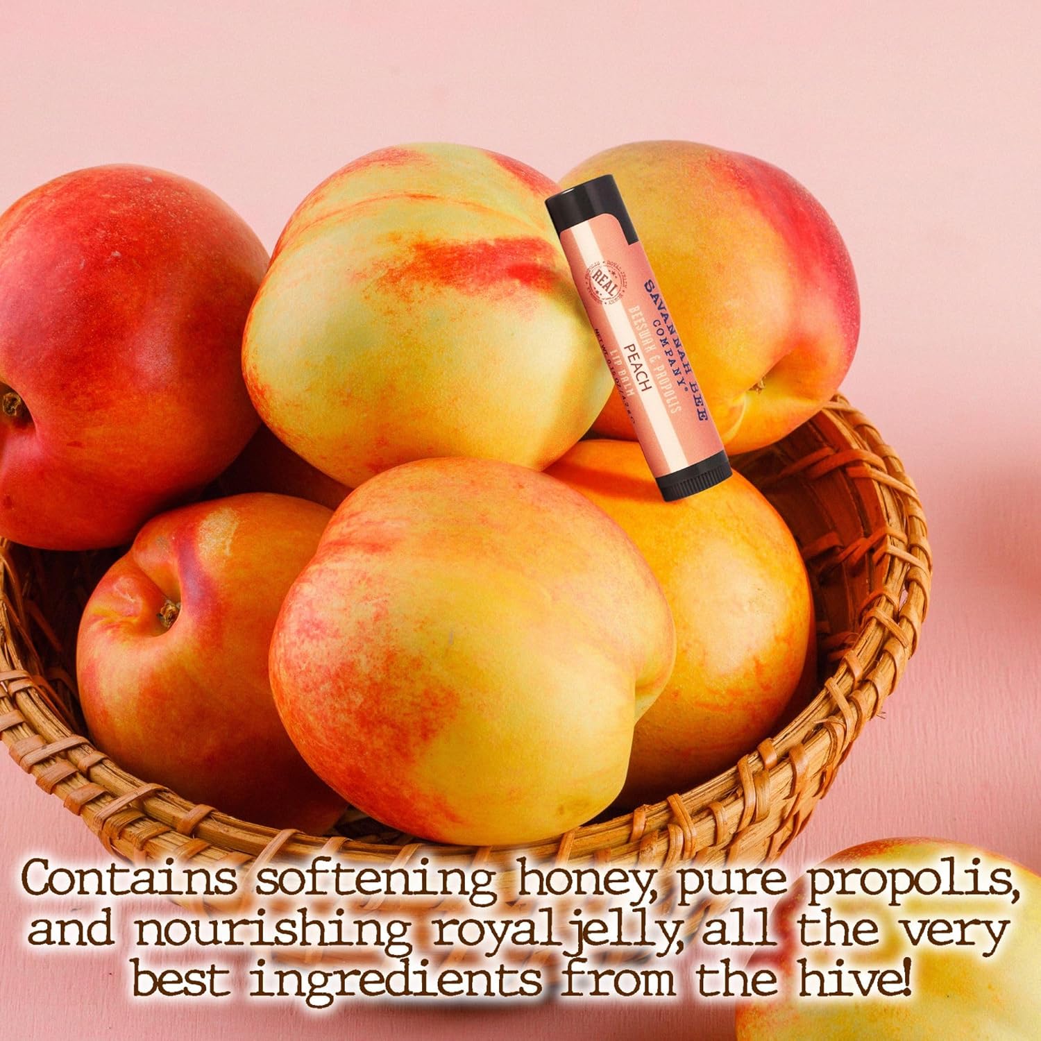 Savannah Bee Lip Balm Hanger 0.15 oz - Invigorating Mint Flavor - Natural Ingredients for Supple, Soft Lips - Convenient Hanger Design (.15 Oz, Peach)