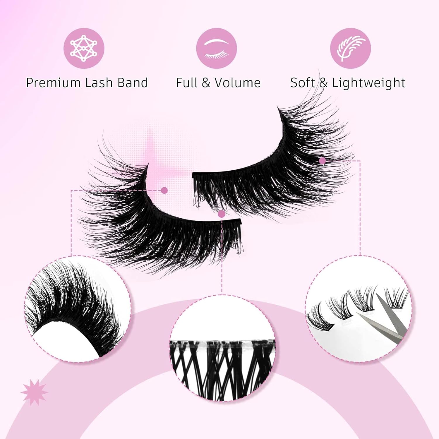 - 【THIN BAND DESIGN】: Specially designed thin lash band. Not only does it make your eyes look natural when you wear fake lashes, but it also puts less pressure on your eyelids and improves your wearing comfort.
