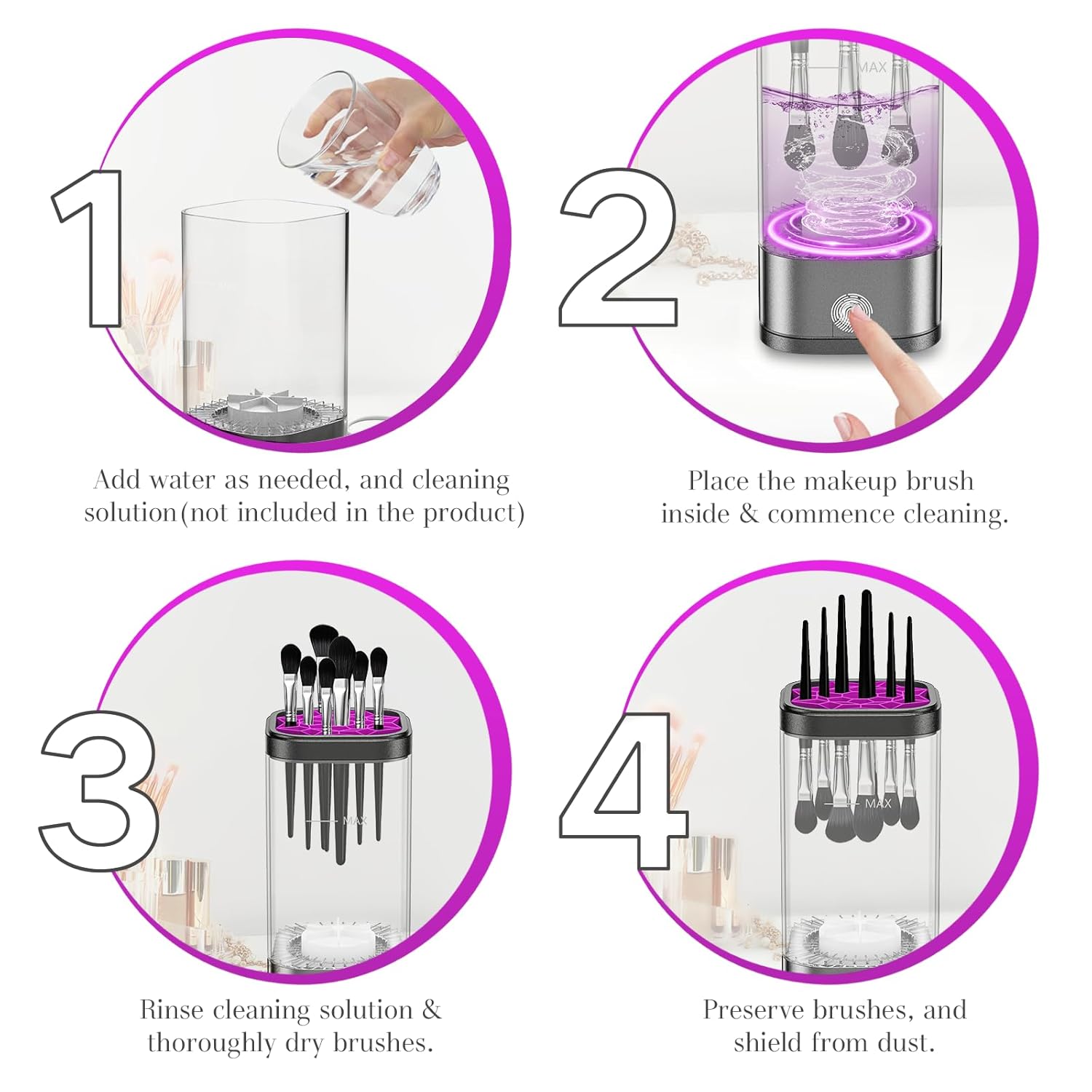 - Makeup Brushes Need A Shower Too: Brush cleaner machine easily cleans away powders and color residue, leaving your brushes spotless and refreshed. Regular use helps extend the lifespan of your brushes, ensuring they stay in optimal condition for longer(Suggest once a week)