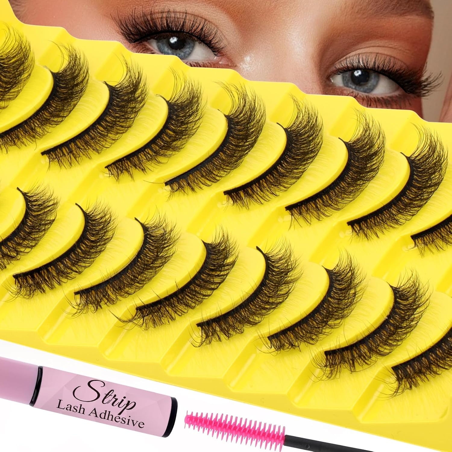 Strip Lash with Glue for DIY Lash-users: 10 Pairs, DIY, Natural Look, Fluffy, Manga, Wispy, Waterproof, Anime, Cat Eye, D Curl, JN17