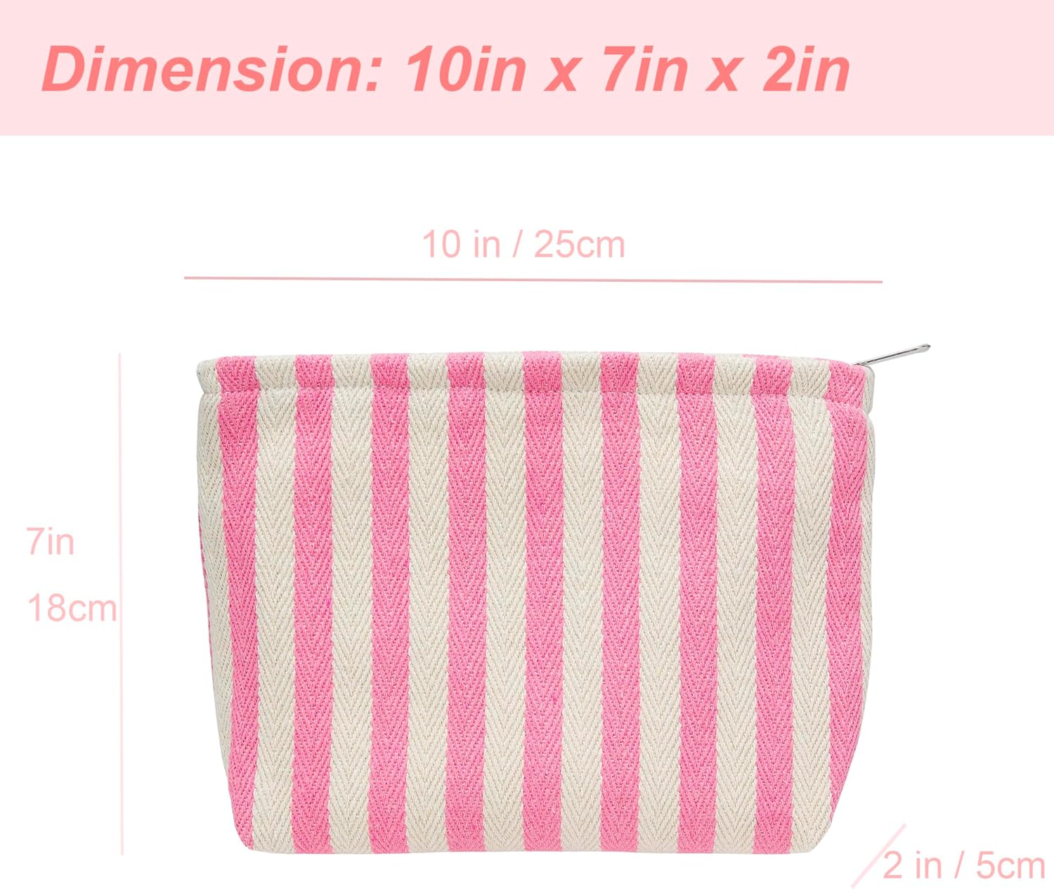 Makeup Bag Large Cotton Zipper Pouch for Purse Travel Canvas Make Up Organizer for Women Cosmetic,Stripe Pink