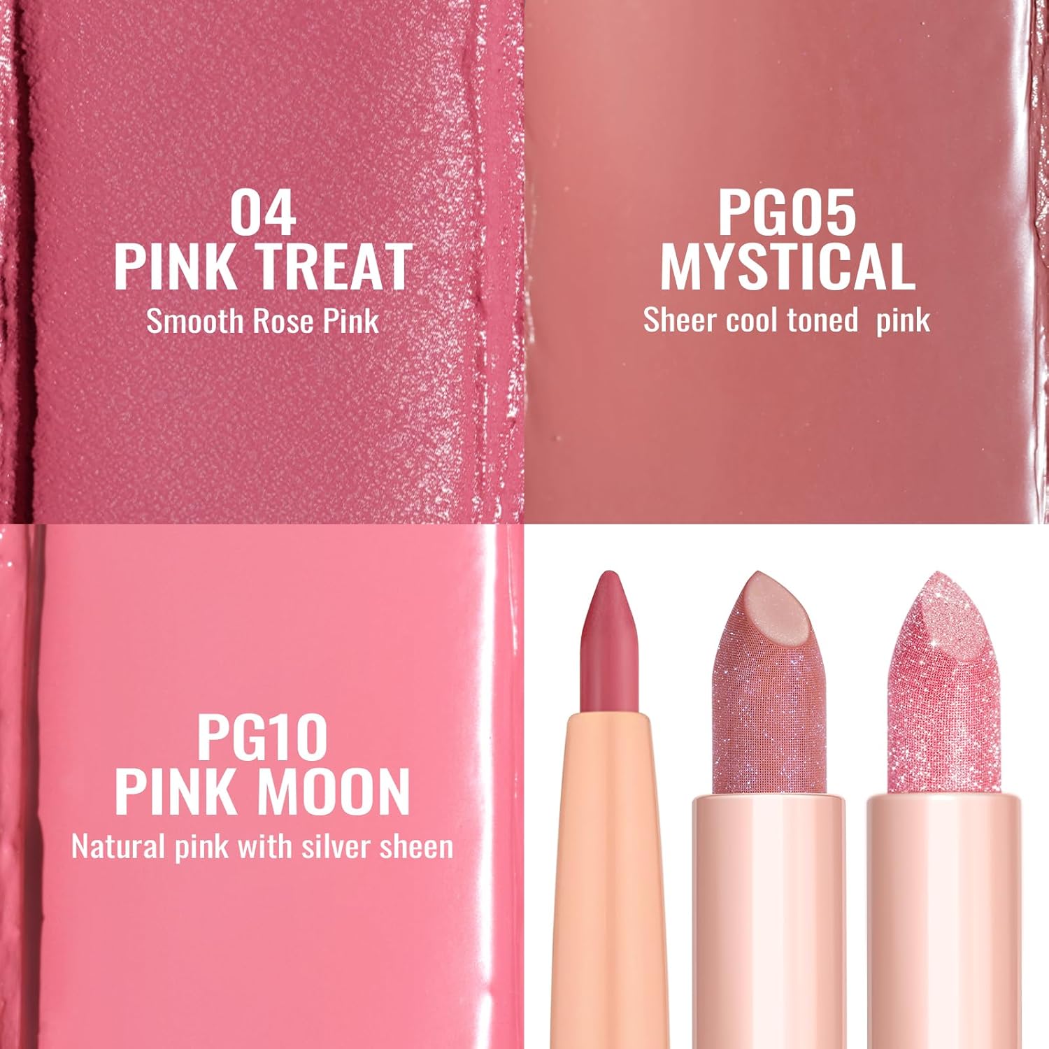Oulac Lipstick & Lipliner Set 3PCS High Impact Lipcolor with Moisturizing Formula, Vegan Beauty, Full-Coverage Lip Color, Gift Lipstick for Women, 04+PG05+PG10