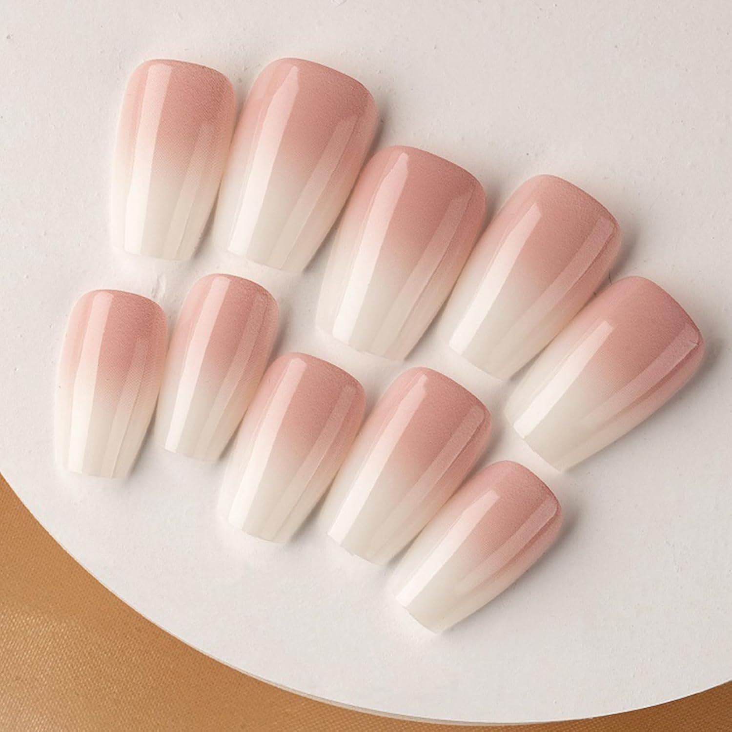240Pcs False Nails Kit, Ombre Short Coffin Ballerina Press On Nails Pink White Gradient Soft Gel False Nail Tips Salon Perfect Fake Nails Kit Gift for Women Extensions DIY (Coffin)