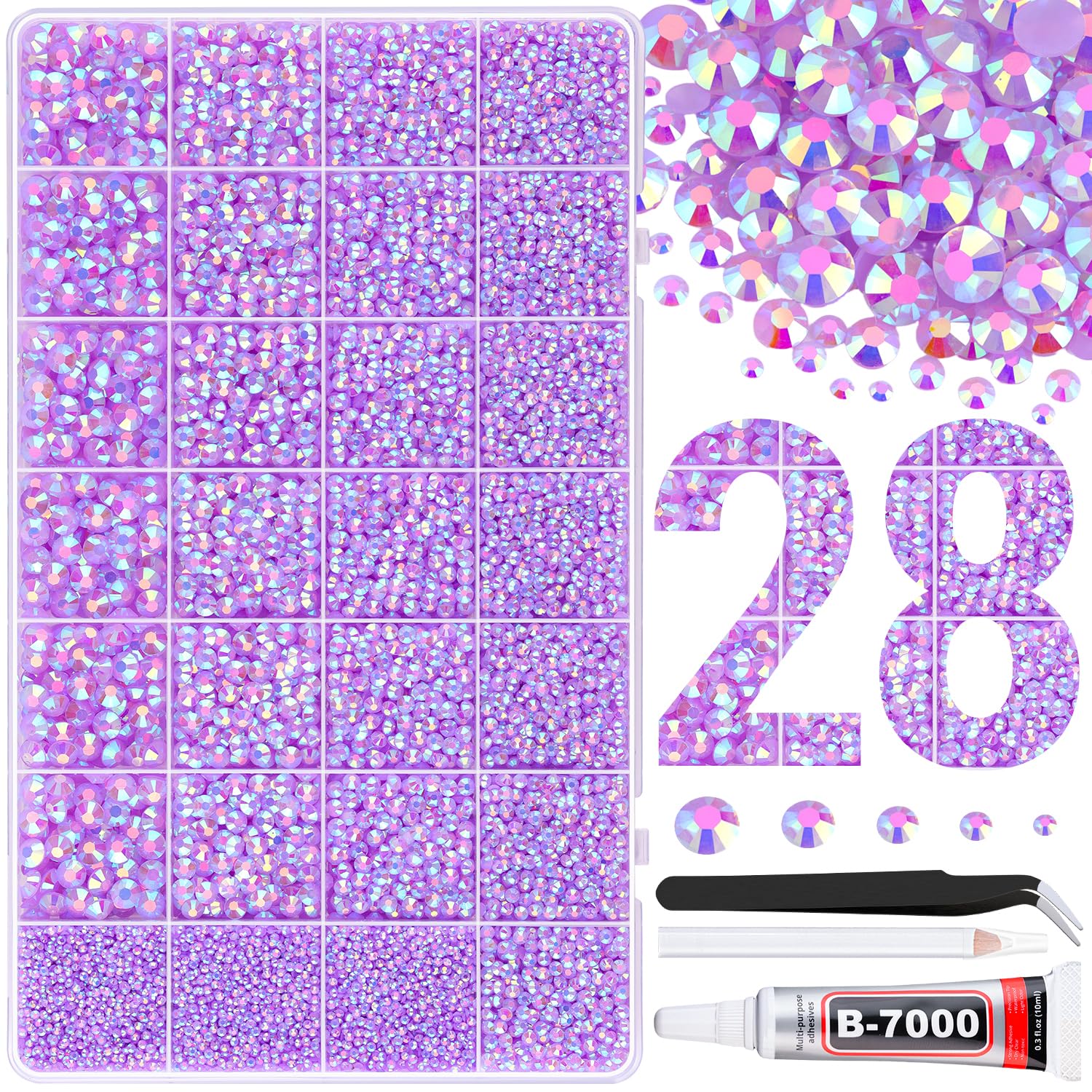 30000Pcs Resin Rhinestones for Bedazzling with Tweezers, Lavender Purple AB Rhinestones for Crafting with B7000 Jewelry Glue for DIY Crafts Clothing Tumblers Shoes Fabric Nail Art