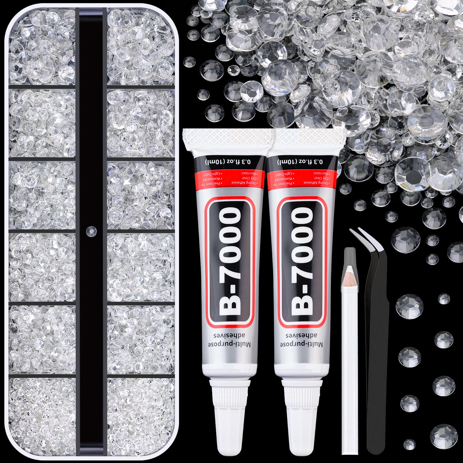 6100Pcs Resin Rhinestones for Crafting with 2Pcs 10ml B7000 Jewelry Glue, 1 Box Flatback Crystals Diamond (Transparent) for Bedazzling Crafts DIY Nail Art,Non Hotfix Gems for Clothing Shoes Tumblers