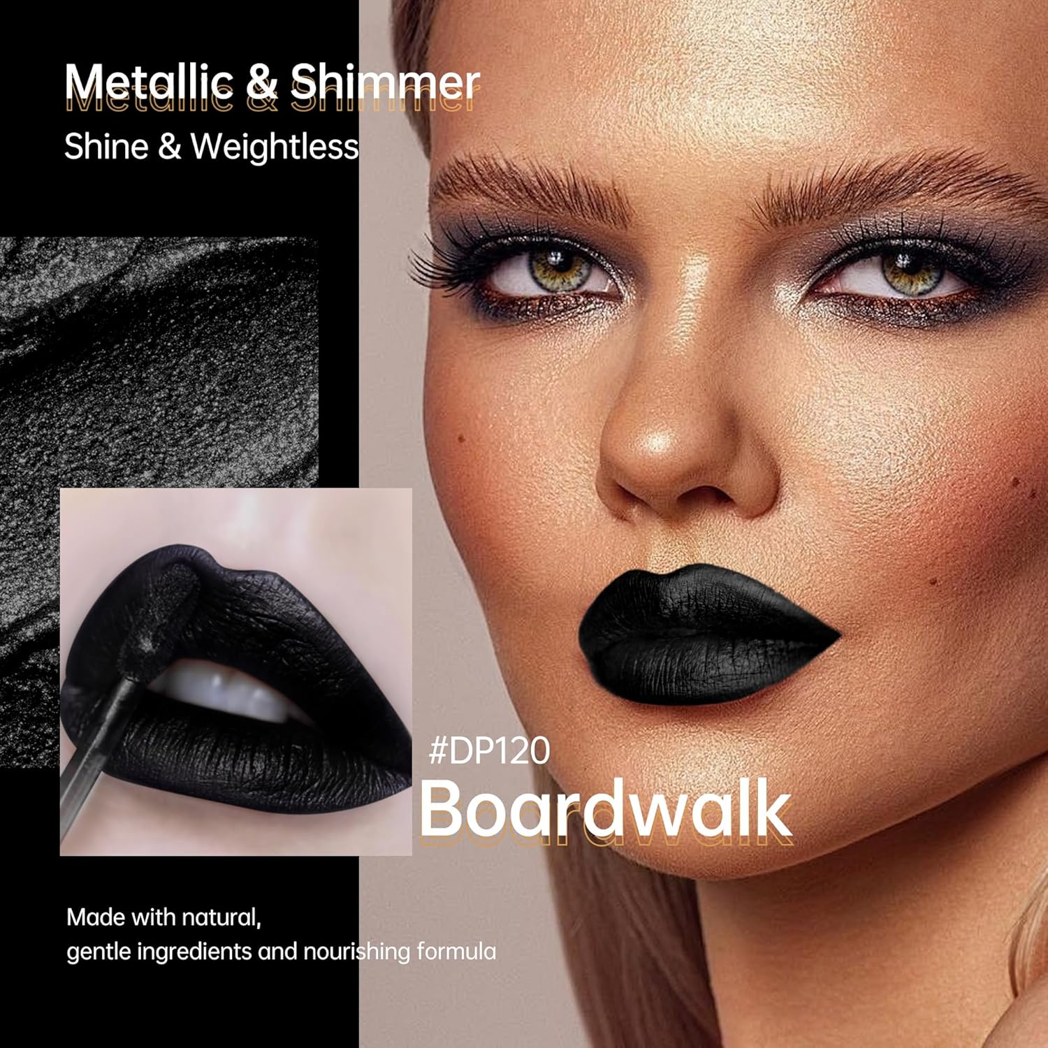 Black Lipsticks for Women Metallic Lipstick Long Lasting Non Stick Cup Lip Gloss, Shimmer Lightweight Hydrating Full Coverage Lip Color, DP120 Boardwalk