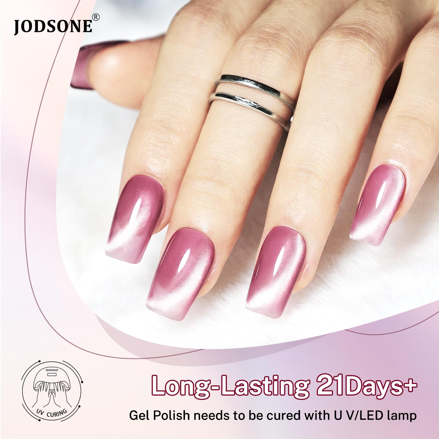 JODSONE 10ml Cat Eye Gel Nail Polish Set Pink Brown Collection 6 Colors for Holographic Glitter Cat Eye with Magnet at Home Salon Design Gift for Girls