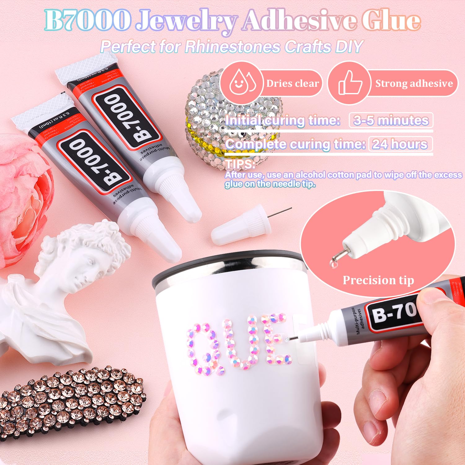 • PACKAGE CONTENT – This all-in-one bedazzler kit includes everything you need to start creating dazzling designs: 1 box of Light Pink AB rhinestones with 24 grids (approx. 30,000 pcs of bedazzling rhinestones assorted size SS6/10/16/20/30 ), 1 precision tweezers, 1 pickup pen for handling small gems, and 3 tubes of B7000 jewelry glue for secure application.