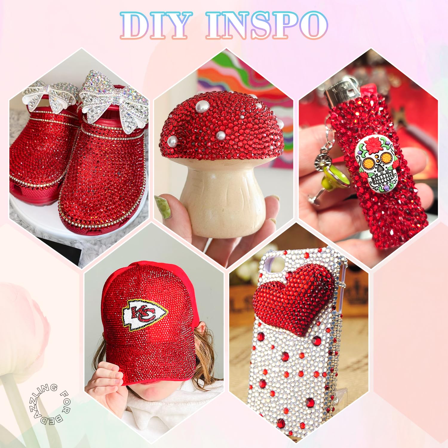 • PACKAGE CONTENT – This all-in-one bedazzler kit includes everything you need to start creating dazzling designs: 1 box of Red rhinestones with 24 grids (approx. 30,000 pcs of bedazzling rhinestones assorted size SS6/10/16/20/30 ), 1 precision tweezers, 1 pickup pen for handling small gems, and 3 tubes of B7000 jewelry glue for secure application.