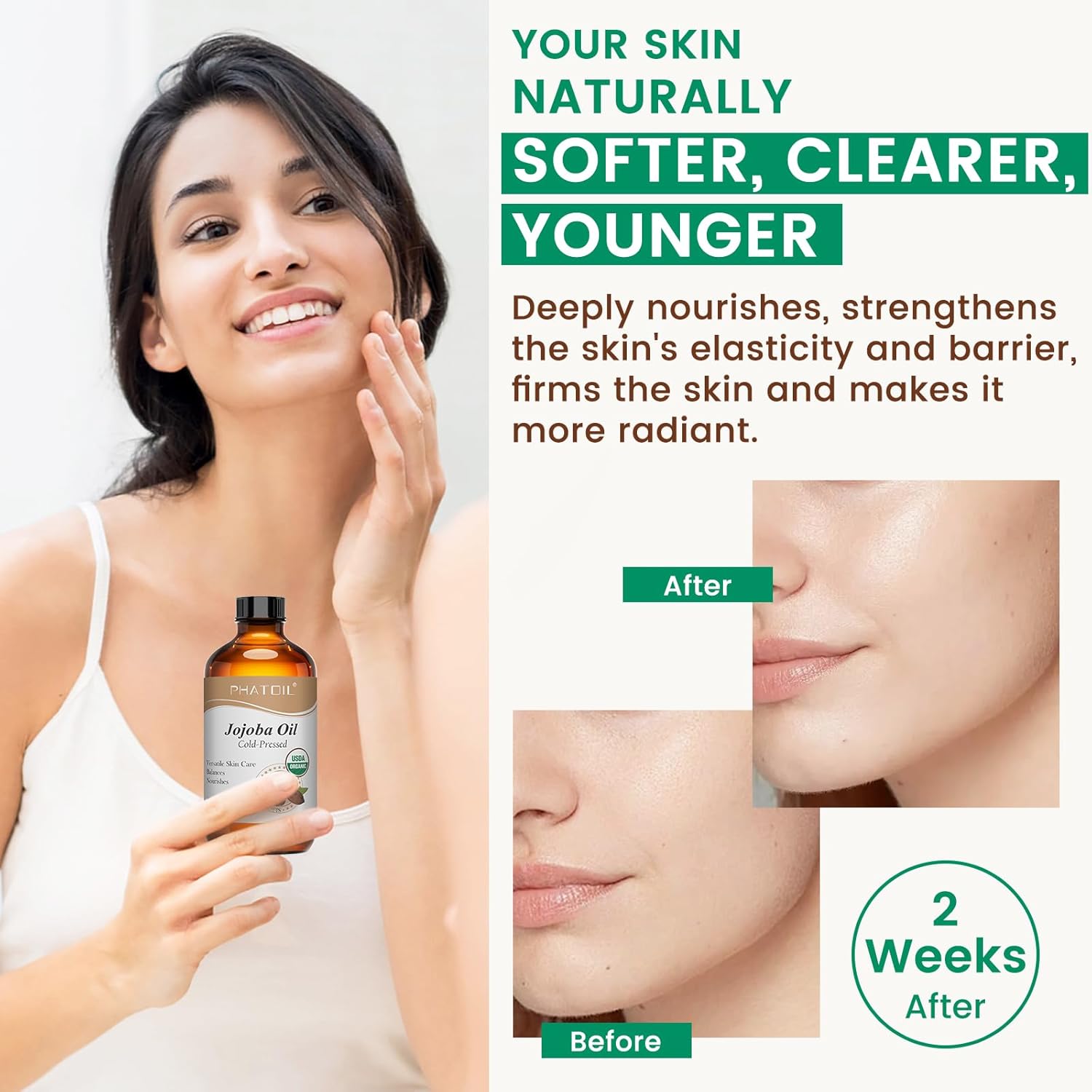 - Natural Ingredients:Our cold-pressed USDA organic jojoba oil maintains its natural properties and nutrients for maximum skin benefits. Jojoba seed oil, generally referred to as jojoba oil, is rich in vitamin D and protein, and is an excellent nourishing and moisturizing oil that maintains skin hydration, as well as softens the skin and is suitable for both mature