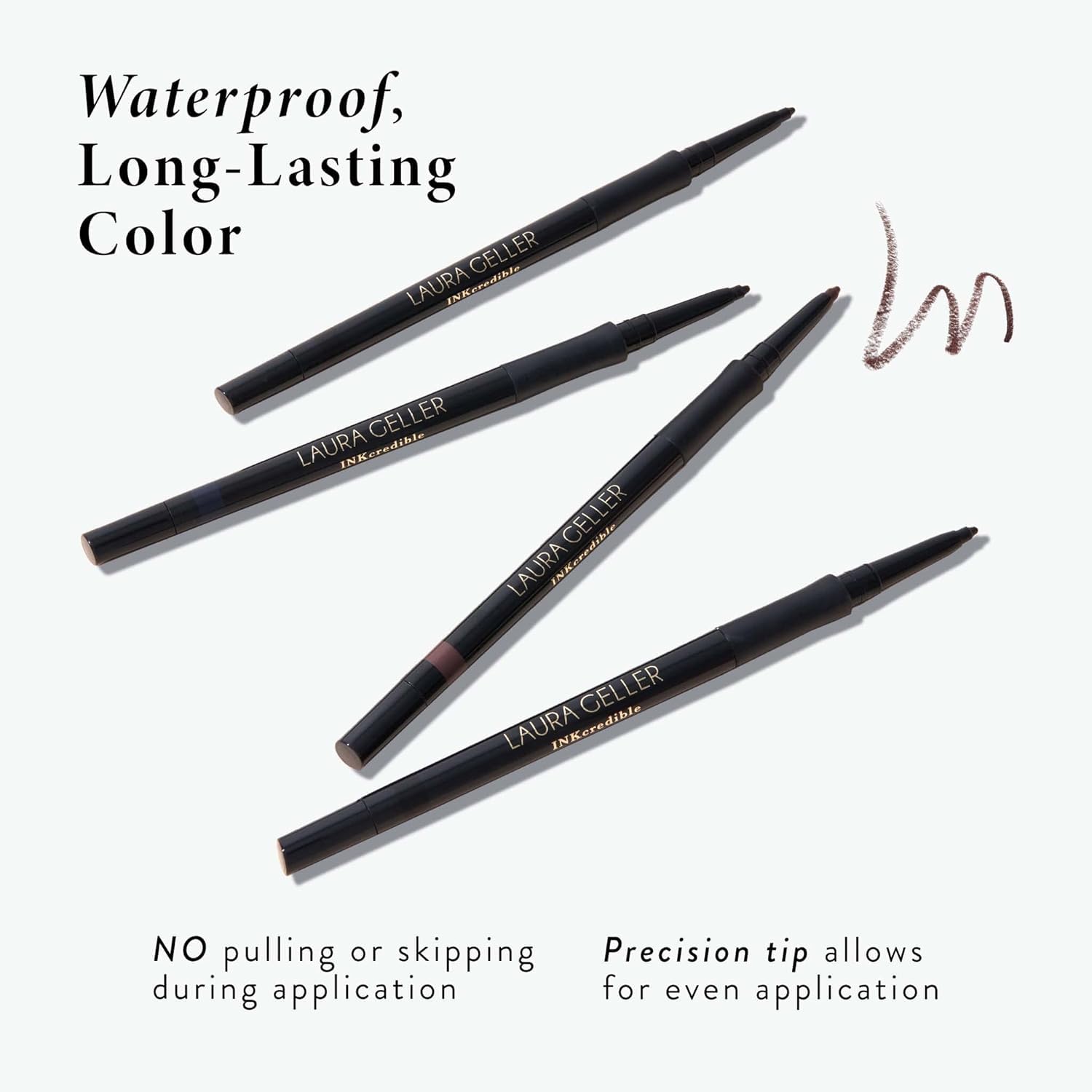 - LAURA GELLER INKCREDIBLE GEL WATERPROOF SMUDGE-PROOF EYELINER PENCIL WITH BUILT IN SHARPENER: INKcredible eye looks are only strokes away! Intense, creamy color glides on as effortlessly as a liquid liner with the control and staying power of a pencil.