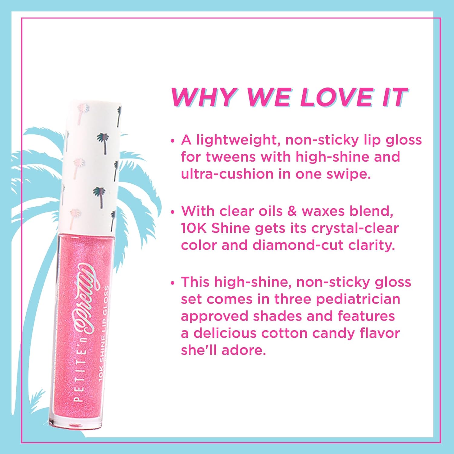 - Sparkle Season Starts Here - Bring the magic to their makeup with this mini lip gloss trio! Featuring 10K Shine pigments and shimmering finishes, these glosses give a frosty glow that’s perfect for holiday glam or everyday sparkle.
