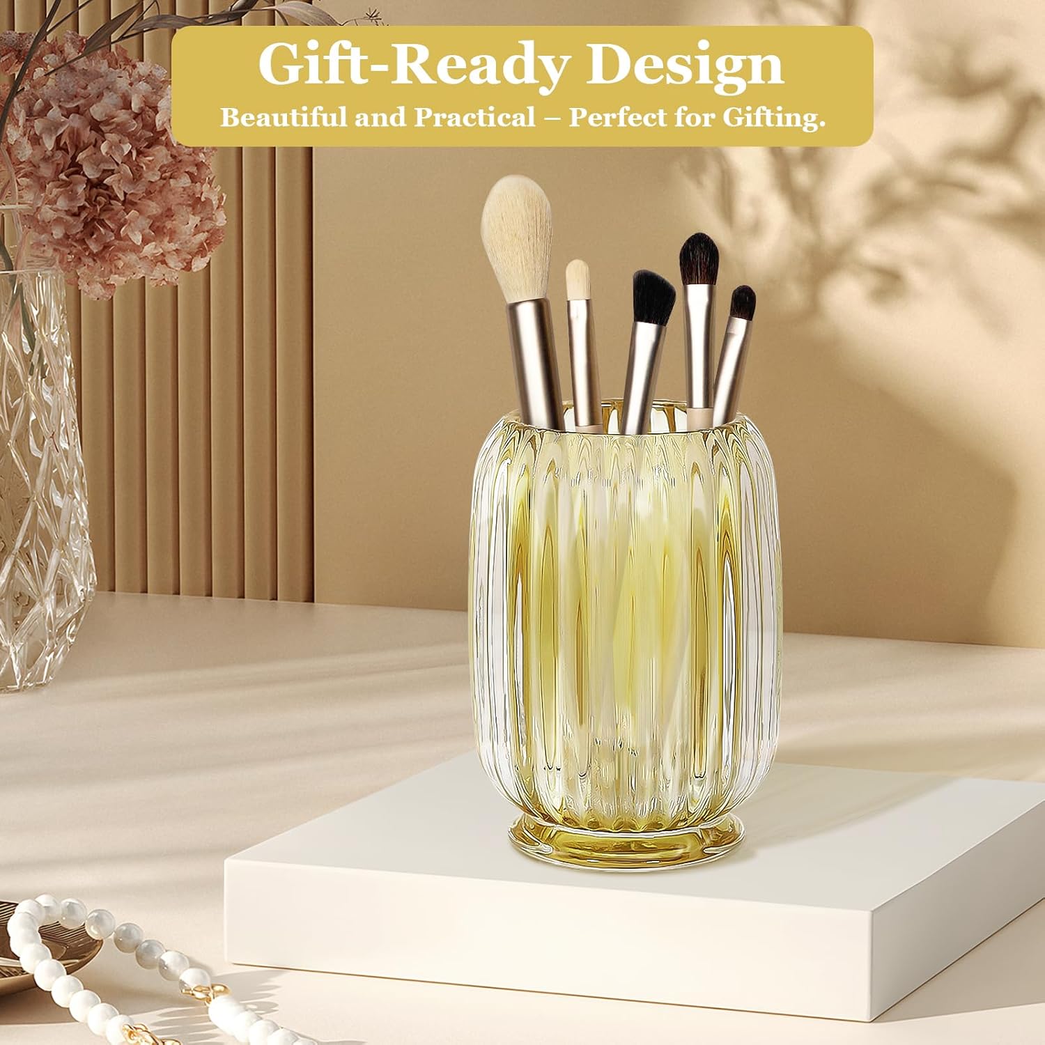 Makeup Brush Holder, Thick Glass Makeup Brush Organizer Cup, 4.8" Tall for Vanity Hair Brush Holder Brushes Storage, Makeup Brush Holder Organizer organizador de brochas de maquillaje Crystal Amber