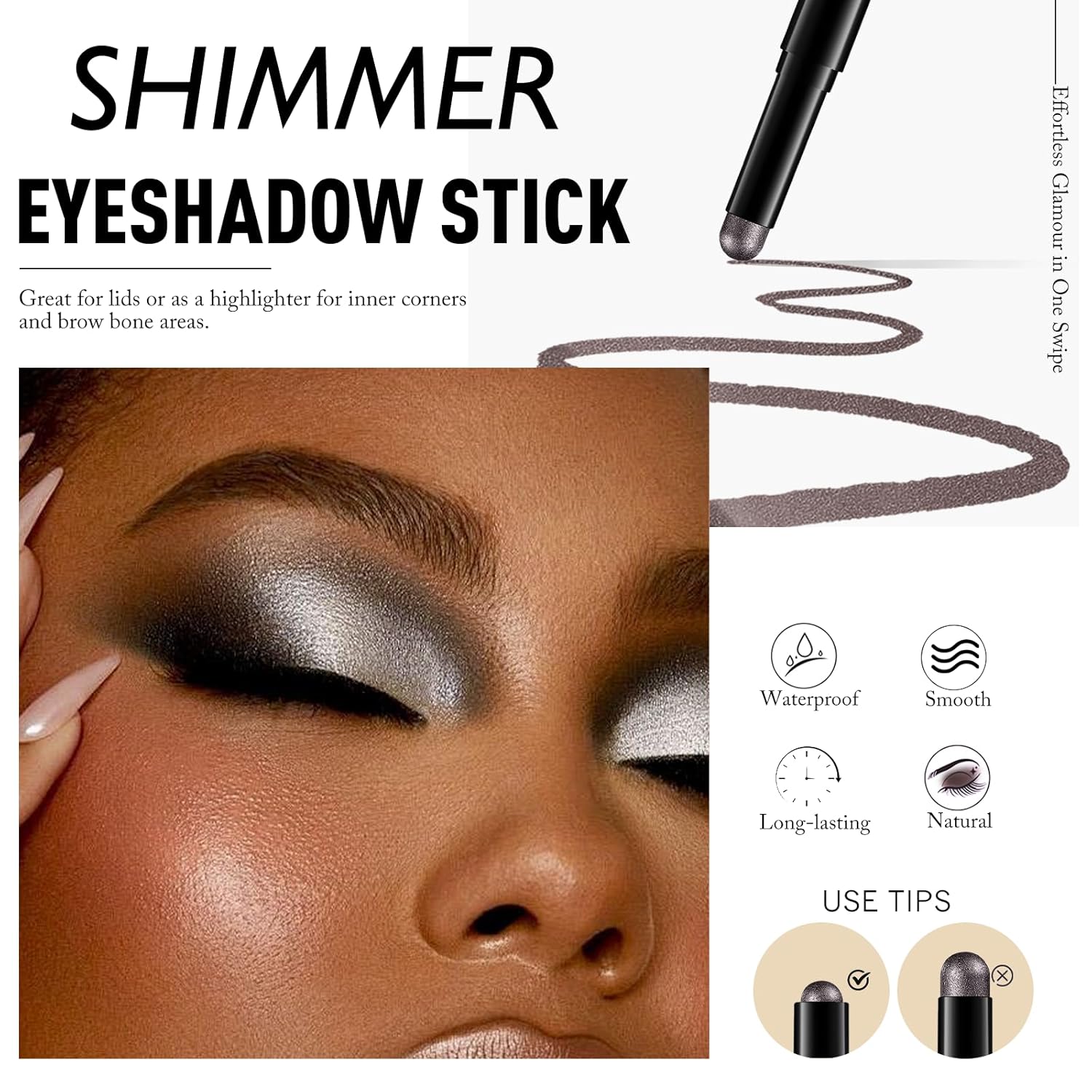 Dark Taupe Shimmer Eyeshadow Stick, Waterproof Cream Eye Shadow Pencil Long-Lasting Crease-Proof Glitter Eyeshadow Crayon Smooth High Pigmented Highlighter Neutral Eye Shadow Liner Makeup