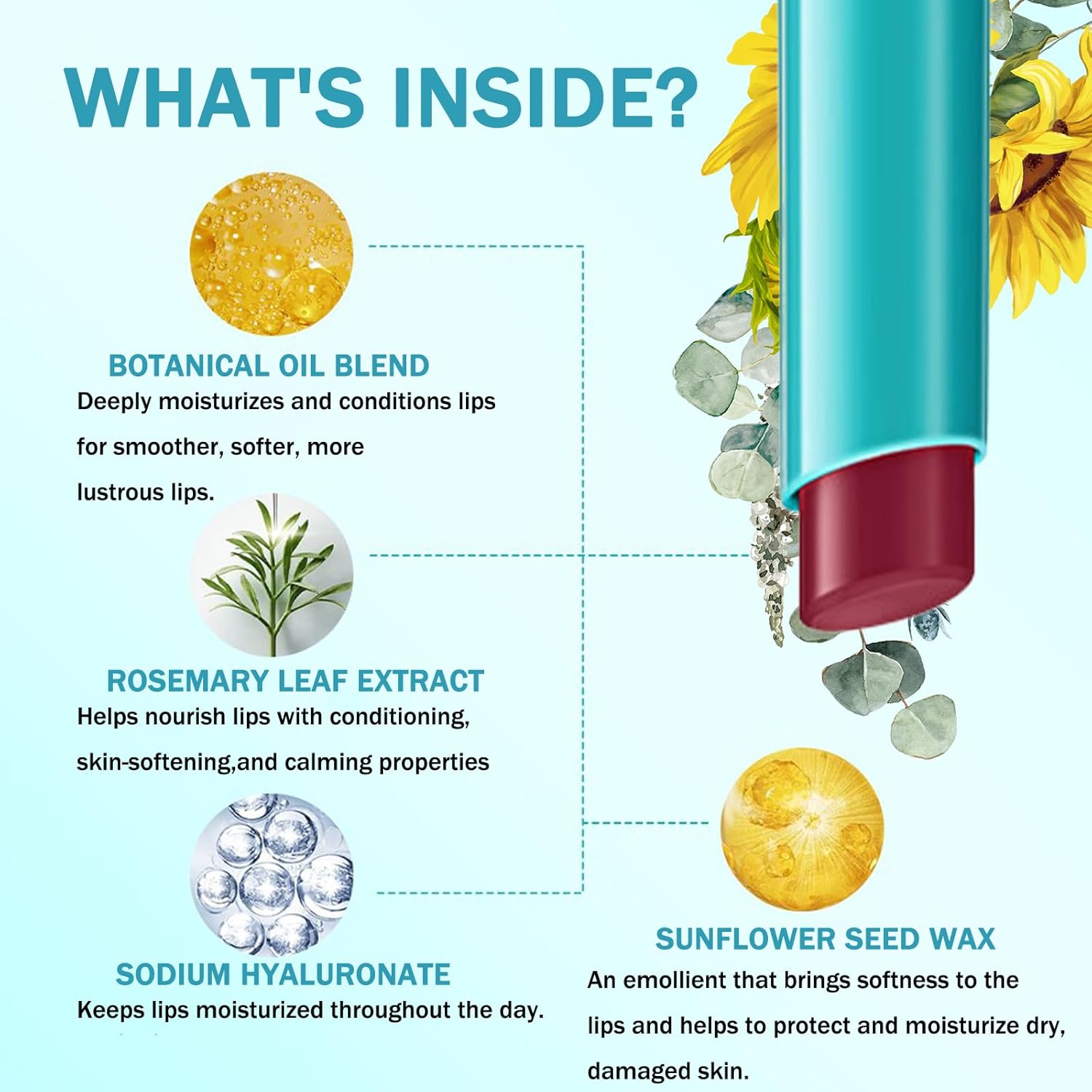- [Easy To Apply Non-Sticky]: This lip balm has a light texture, easy to apply, can be quickly absorbed by the lip skin, so that the lips are naturally shiny, but not sticky. The lip oil can help you solve the problems of dry lips, dull lip color and deepening lip lines.