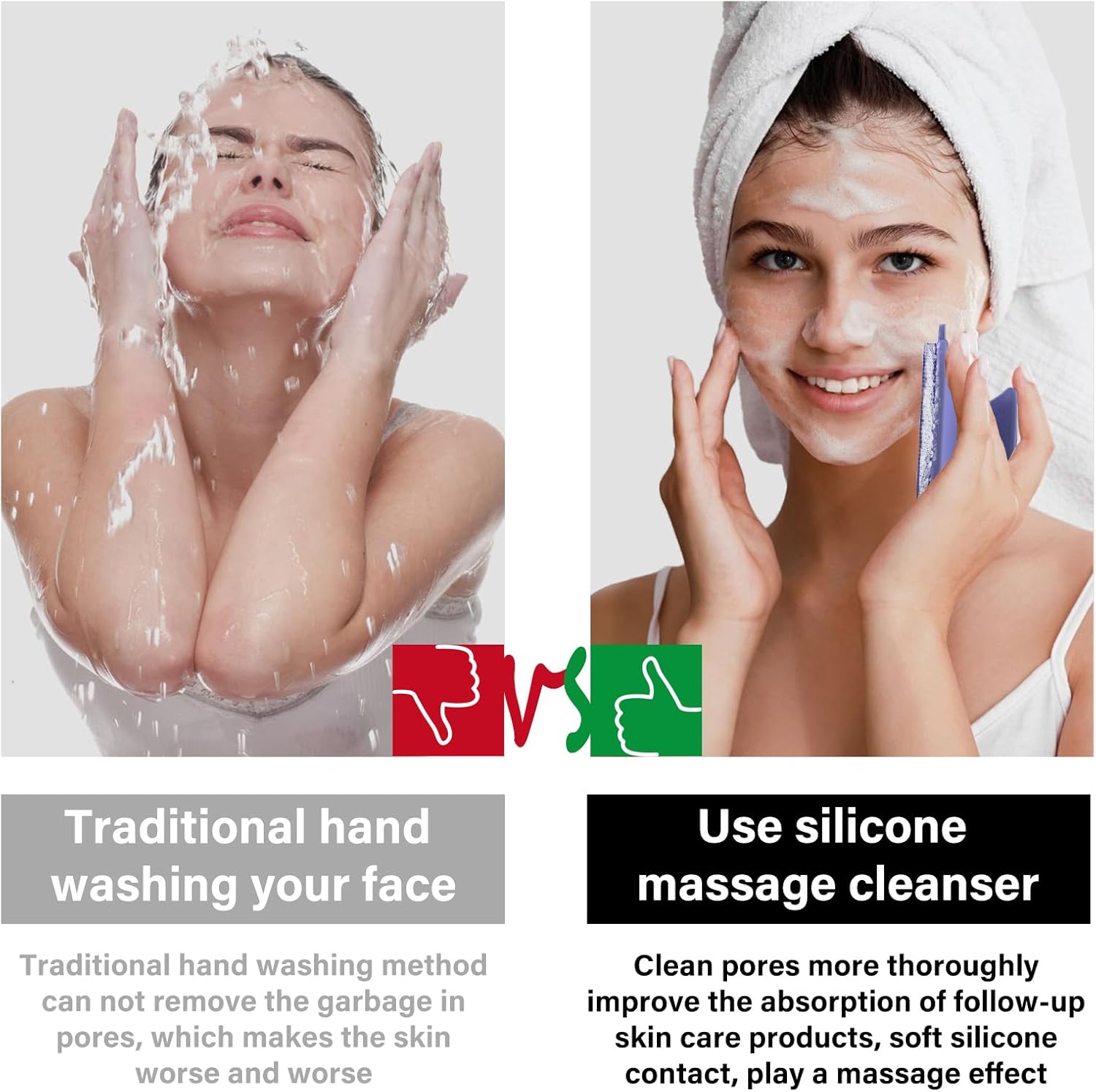 - Durable silicone brush: Made of tough, non-toxic, food-grade silicone, it is more environmentally friendly, reusable, and features soft and smooth bristles that massage the face with our facial cleansing brush to cleanse pores and enhance the absorption of skincare products.