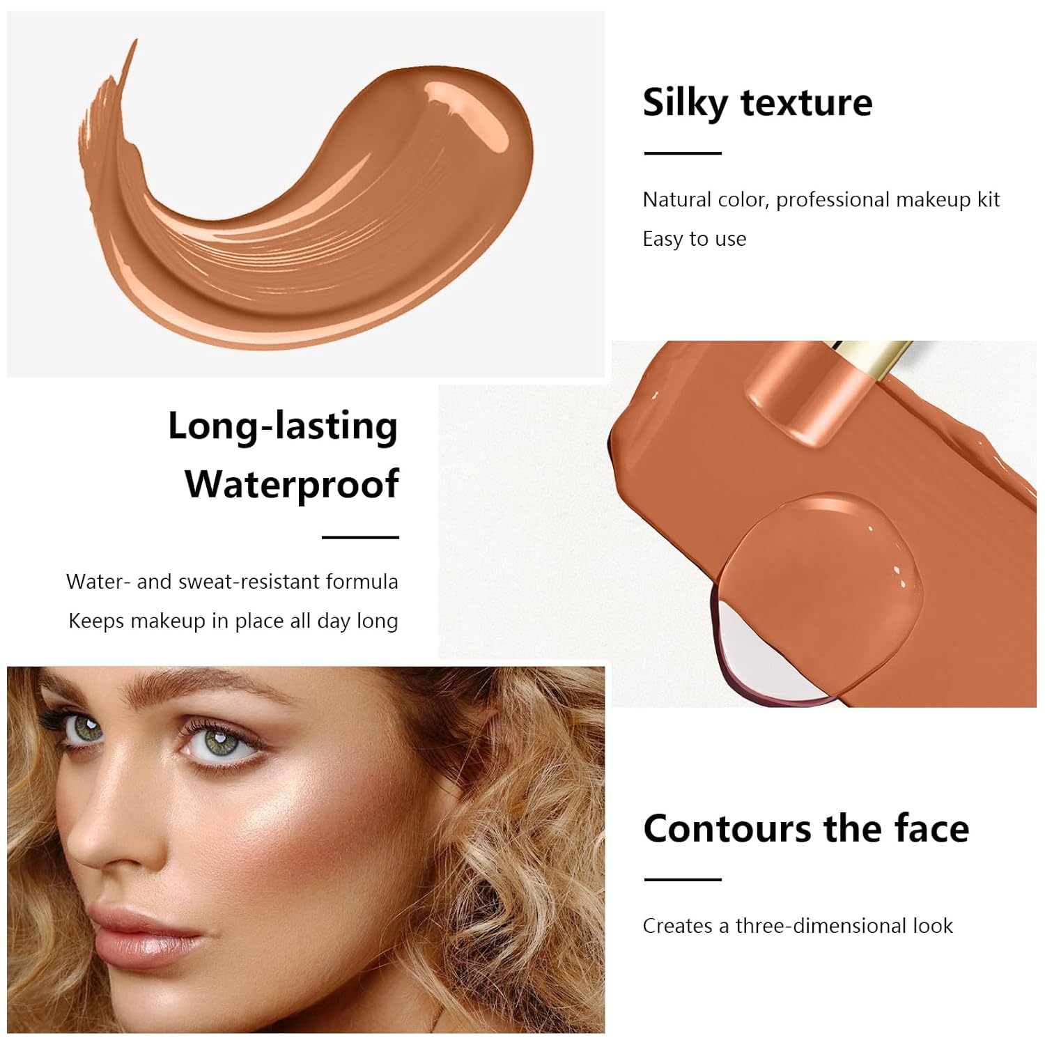 - 【Creamy, Blendable & Long-Lasting Formula】Features a smooth, lightweight cream texture that melts into skin for seamless contouring. The highly pigmented yet buildable formula blends effortlessly without patchiness, staying smudge-proof & transfer-resistant all day—even in humid weather!